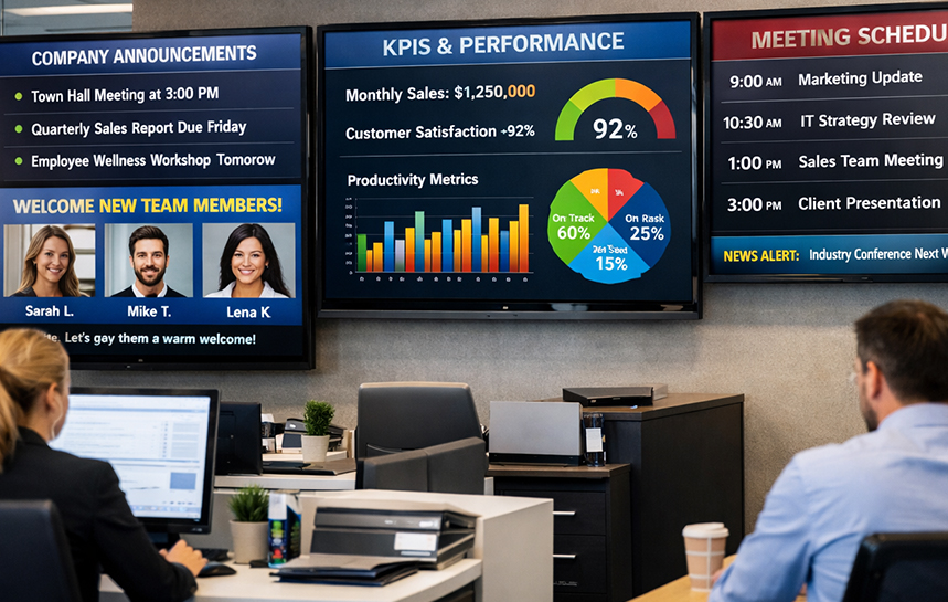 Showcase advertisements, announcements, and promotional content in high-traffic areas.