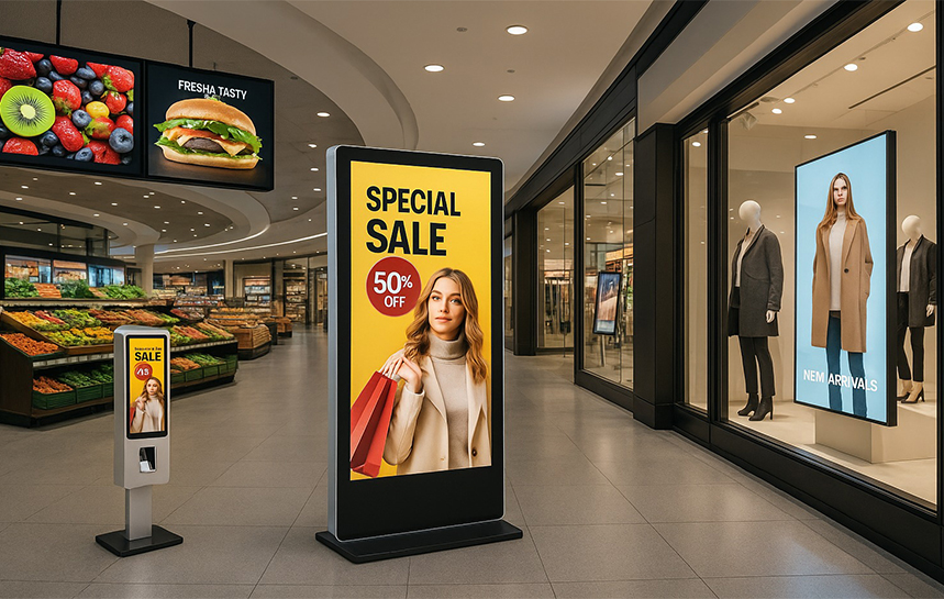 Premium indoor digital signage designed for malls, offices, and showrooms. Perfect for showcasing advertisements, announcements, and branded content in high-traffic indoor environments.